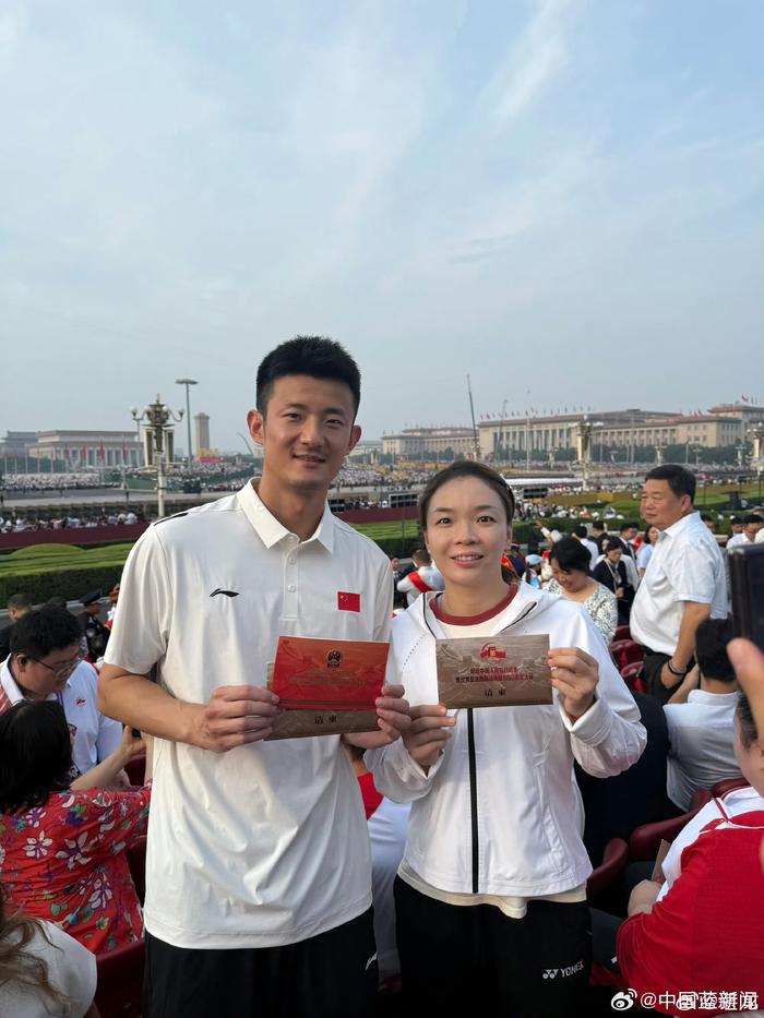 【#谌龙陈清晨观礼阅兵#】今天,羽毛球运动员@谌龙 发博分享现场观礼九三阅兵的感受。照片中,射击运动员@光靠干饭就 和羽毛球运动员@陈小白BAOBAO 都现场观礼了阅兵仪式。#盛李豪去现场看阅兵了##东风61# 发布于:浙江