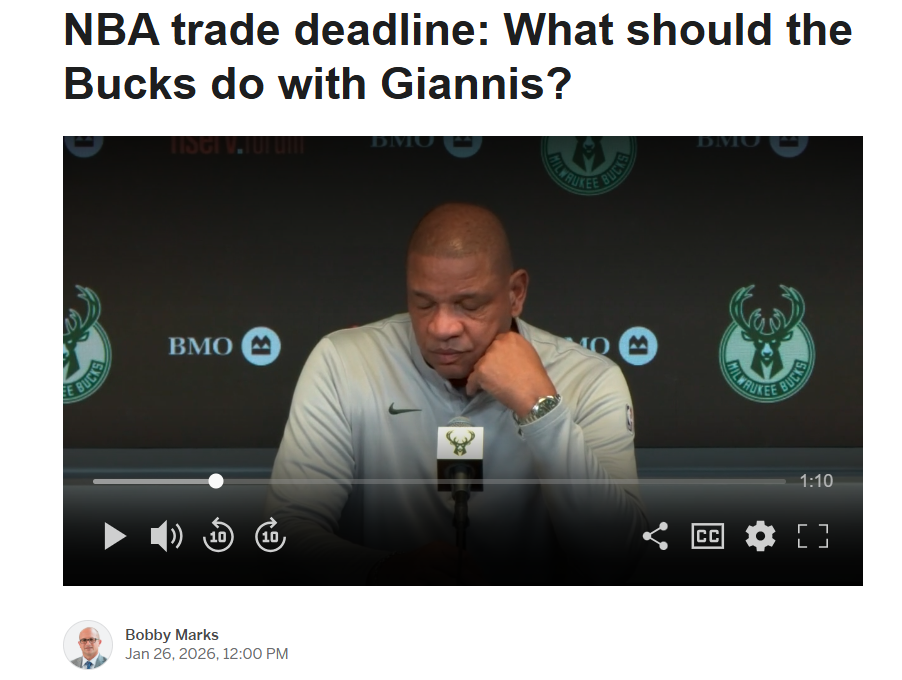 Jake Fischer在文中写道:“联盟内部已经达成共识:字母哥与雄鹿的分手已经不可避免,一名特别熟悉雄鹿队内事务的消息人士透露‘事情正在发生,即使不是现在,也会在选秀期间进行交易’”